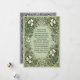Esta bênção irlandesa lindamente desenhada apresenta uma bordadura ornamentada de trevo celta em tons suaves de verde, criando uma peça elegante e sincera. A bênção, repleta de votos de amor, riso e boa sorte, é perfeita para celebrar a herança irlandesa ou enviar sentimentos calorosos aos entes queridos. Ideal para o Dia de São Patrício, presentes de inauguração ou como uma peça decorativa para inspirar e alegrar qualquer espaço. Os detalhes intrincados e os motivos tradicionais tornam esta uma lembrança atemporal para quem valoriza a cultura irlandesa e bênçãos significativas.