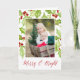 Envie cartões de natal para amigos e família em estilo chic com nossos cartões com fotos dobrados elegantes.Frutos e folhas, pintadas à mão, de cor aquosa, em quadros vermelhos e verdes, com a sua foto vertical ou orientada para retratos, bordada em branco. A expressão "Feliz e Brilho" aparece na parte inferior em letras vermelhas de escrita de caligrafia moderna. Personalize o dentro com uma mensagem personalizada e aprovação, realçado com um pequeno erro de som correspondente.