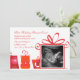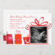 Feature your ultrasound in a Christmas present and send your "gift" to everyone on your mailing list to announce your baby's on the way. The white background has a border of brightly-wrapped gifts and the biggest present is a window for your baby's ultrasound. The card is easy to customize with your wording, font, font color and choice of six paper types.