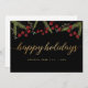 Cartão De Festividades Black & Gold Red berries Happy Holidays Logo