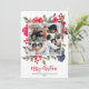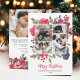 Prepare-se para travar o jogo do cartão de feriado com a nossa saudação de Natal Moderno Simple 5 Photos! Não é apenas um cartão; é uma minibavana dos momentos familiares favoritos de vocês com uma estrutura de aquarela pintada manualmente, enfeitada com uma graciosa mistura de flores vermelhas, matizes azuis sujentos e galhos verdes de pinheiros. Em preto clássico, branco e vermelho, este cartão é uma mistura festiva de estilo e sentimento. Espalhe a alegria com um toque do seu único sabor familiar!