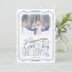 cartões com fotos de feriado personalizados com barato simples para personalização. Este design alegre apresenta elementos florais brancos e tipografia divertida, escrita à mão, em azul de inverno e cores de cinza. O texto diz: "Que seu coração esteja cheio de amor e alegria das férias". Personalize com sua foto, nomes e o ano. O verso tem espaço para fotos ou texto adicionais. Use as ferramentas de design para editar as fontes de texto e as cores ou adicionar mais fotos para criar uma única de um tipo de Cartões de foto de Natal.