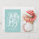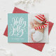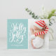 Cartão Festivo Holly Jolly Feriado Fotográfico Com Letra Mão | Enviar cartões de natal festivos à família e aos amigos com este cartão festivo de férias personalizável. Ele apresenta uma camada de "salgadinhos" com destaque para neve e flocos de neve. Personalize adicionando sua foto favorita. Itens correspondentes estão disponíveis.
