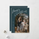 Blue Modern Script Merry Christmas Arch 2 Photo Holiday Card apresenta um roteiro divertido e moderno em uma foto de sangria de cheio, juntamente com uma segunda foto no verso e na sala para sua mensagem.