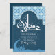 Cartão De Festividades Blue Patterned Arch | Mosque Silhouette Eid Card