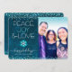 Cartão De Festividades Blue Photo Peace Joy Love Script Snowflake Modern