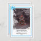 Merry Christmas and Happy New Year in black typography. Insert Family Last Name and Year. Festive snowy Christmas tree and lights. Leave image on front, or Upload your own. Light blue and gray geometric border with blue snowflake. Greeting and gray snowflake element on backside. Original Photography Design by TamiraZDesigns.