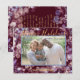Boas Festas em texto cursivo preto. Fundo cintilante burgundy com estrelas douradas e orbes de luz. Adicione a foto da sua família, nome e mensagem opcional no verso. Se você não quiser adicionar uma mensagem, exclua o texto (na seção personalizar) ou apenas mude para Natal 2020.