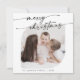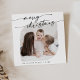 Cartão de Natal Da Família Boho Chic Black White Photo Cute Festa De Natal. O design boêmico preto-e-branco, moderno, apresenta uma caligrafia rústica simples com um estilo único, mas clássico. Personalize a frente de seus cartões de Natal com o ano, seu nome de família e uma foto. Incluir uma mensagem de cartões de natal personalizada no verso.