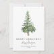 Cartão de Natal simples e bonito, com uma árvore de Natal aquosa, com Feliz Natal e Feliz ano novo escrito em caracteres elegantes. Personalize e personalize seu cartão com seu nome e ano, e sua própria mensagem personalizada no verso.