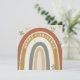 Celebrate a colorful, modern holiday with this boho rainbow Christmas card. Muted earthy tones and abstract shapes create a stylish and cozy festive greeting.