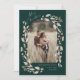 Cartão de Férias de Natal do Arch de Flor Selvagem de Boho. As costas têm uma foto adicional e uma mensagem personalizada da família. Clique no botão personalizar para personalizar este design com seus detalhes.