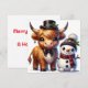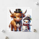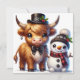 Cartão De Festividades Boi Highland Dapper com Amigo Boneco de Neve
