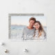O cartão com fotos de feriado elegante apresenta uma foto orientada para a paisagem com cheio, com uma cobertura de luz bokeh para um aspecto festivo e borbulhante. "Feliz ano novo" ou sua escolha de cartões de natal é sobreposta em caracteres pretos de script, com seus nomes e o ano ao lado. Cartões invertendo para um fundo botânico neutro e padronizado.