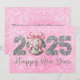 Cartão De Festividades Bola de Discoteca Ano Novo Feliz 2025 Laço Rosa