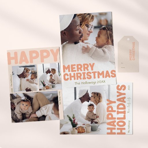 Envie desejos calorosos nesta temporada de festas com este ano de Feliz Natal, único e bonito e corajoso e moderno, na revisão 6 foto feliz cartão de festas. Sua design simples e minimalista apresenta elementos inspirados em rosas claro, coral pastel, verde-sábio, borrão e matizes de pêssego. Celebrando o espírito festivo de dezembro, esta design traz um toque alegre e divertido a qualquer ocasião. As cores sazonais brilhantes e pálidas e a formulação criativa fazem dele uma forma perfeita de espalhar felicidade e alegria entre amigos e familiares neste inverno!