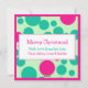 Feliz Natal em estilo moderno retrô. Bolhas ou pontos rosa neon e verde rodeiam a palavra "Feliz" com letras manuscritas. O verso apresenta mais pontos e um painel de mensagem que você pode personalizar com seu cumprimento: Feliz Natal, Boas Festas ou qualquer outra coisa que você deseje. Opções adicionais de personalização incluem espaço para o nome da família ou uma mensagem breve e nomes individuais. Uma versão moderna de um visual vintage. Brilhante e ousado, mas também limpo e contemporâneo. Este é um cartão divertido e chamativo para qualquer cumprimento de Natal.