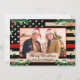 Enviem saudações de Feliz Natal a amigos e familiares com este único Cartão de Natal Thin Red Fire - a bandeira Americana nas cores da bandeira do bombeiro, preto moderno e vermelho com folhas e bagas ocas num fundo de madeira. Personalize com sua foto e seu nome favorito da família. COPYRIGHT © 2020 Judy Burrows, Black Dog Art - Todos Os Direitos Reservados. Cartão de Natal de Bandeira Americano Thin Red Line