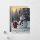 Cartão De Festividades Boneco de Neve Nostálgico & Criança Alegre na Neve