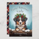 Este adorável cartão de cartões de natal apresenta uma ilustração fofa australiana Shepherd Dog vestindo uma coroa festiva de sagrada, pinheiro e bagas, com flocos de neve suavemente caindo contra um fundo maravilhoso do inverno. O pequeno Cachorro Australiano está espiando o registro de neve para dizer olá! O texto lúcido "Desejos de Natal Louco" adiciona uma saudação sazonal quente e pode ser personalizada como quiser. O verso é decorado com uma verificação de xadrez clássica, adicionando um toque tradicional ao design geral. Este cartão bonito e brincalhão é perfeito para enviar alegria de férias para a família e amigos, e o nome e data personalizáveis fazem dele uma marca personalizada.