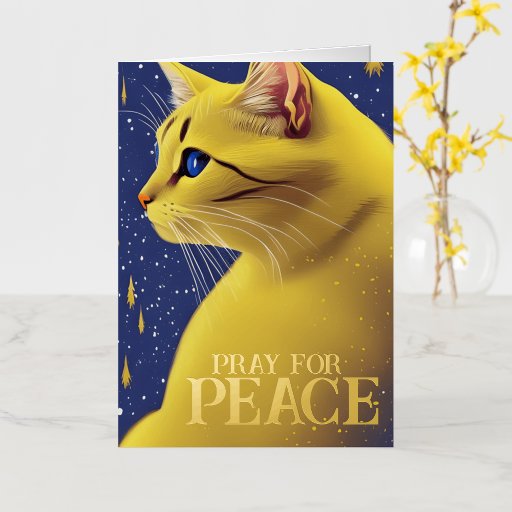 Bonito Gato Amarelo com Olhos Azuis, este design apresenta um lindo gato amarelo com olhos azuis. Ucrânia - reze pela paz.
