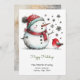 Cartão De Festividades Bonito Snowman e Red Bird Happy