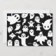 Boo minimalista moderno do nosso cartão de Natal de Halloween. Tipografia gráfica ousada e retrô em dourado falso chic com desenho de estrelas retrô em um fundo preto. Envie um cartão de Natal com foto divertida e moderna em estilo retrô minimalista para amigos e familiares. Adicione sua foto de Natal, sua mensagem personalizada, nome e ano. Adorável padrão de fantasmas no verso. Foto cortesia de @casa_de_frenchies_ Marisu Valencia