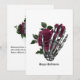 Cartão de casamento ou Halloween com mão e coração esqueléticos florais góticos bordô caprichosos e personalizáveis para os detalhes do seu evento.