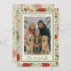 This elegantly designed classic holiday greeting card features seasonal botanical elements such as green holly leaves, red berries, classic Poinsettia flowers, Christmas mistletoe, cinnamon sticks, and orange slices. It provides space to customize the front with your family photo and includes a personal message on the back. Combining ornate and stylish vintage elements, this card is perfect for sharing Christmas messages and wishes in a traditional botanical style, making it an excellent choice for a charming and sophisticated holiday theme.