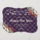 Cartão De Festividades Botanical Purple Plaid String Lights New Year Card