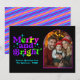 Cartão De Festividades Brilho Neon Moderno Natal Retrô Foto de Família