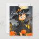 Cartão De Festividades Bruxa Cute Holloween Patch de Abóbora da Lua Cheia