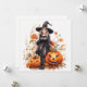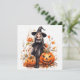 Cartão De Festividades Bruxa de Halloween em aquarela com abóboras