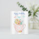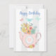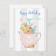Cartão De Festividades Bule rosa com flores e borboletas Aniversário