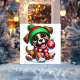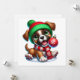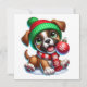 Celebre as festas de fim de ano com este cachorrinho divertido usando um gorro verde e cachecol vermelho, segurando feliz uma decoração natalina. Um cartão alegre para espalhar sorrisos natalinos