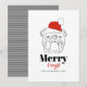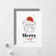 Envie alegria natalina com este cartão de Natal “Merry & Bright” que apresenta uma ilustração em linha preta e ousada de um bulldog usando um clássico chapéu de Papai Noel vermelho. O fundo branco limpo e a tipografia minimalista preta e vermelha criam um visual moderno e atraente. Perfeito para amantes de bulldog, donos de animais de estimação e qualquer pessoa que queira compartilhar uma saudação de Natal divertida e elegante. Personalize com o nome da sua família e o ano para um toque sazonal especial.