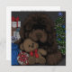 Cãozinho da Terra Nova, desenhado à mão e colorido, com ursinho de pelúcia, presentes e árvore de Natal