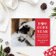 Foi um "Cachorro Desaparecido"! Mostre seu amigo de quarentena favorito com este cartão com fotos moderno e engraçado que fará seus amigos e família sorrirem nesta temporada de festas. Personalize o texto personalizado branco com uma mensagem de feriado de saúde e felicidade, e inclua o nome do seu cachorro e seu sobrenome com o ano. O esquema de cores vermelho e branco inclui sotaques de impressão de pata bonitinhos na parte frontal e traseira do cartão.