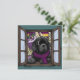 Cartão De Festividades Cachorro pela janela com neve