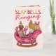 Espalhe a alegria festiva com este cartão vibrante, cor-de-rosa, com um cão de salsicha assado vestido como um elfo, liderando o caminho com um galinheiro de gato e uma cana doce em reboque. Perfeito para amigos e vizinhos, este cartão gritar espírito de feriado com uma reviravolta divertida!