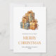 Watercolor Cartão de Natal Merry com caixas de presentes de Natal. Personalize facilmente este elegante cartão de Natal com o seu nome de família e o ano.