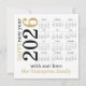Calendário Branco Dourado do Feliz ano novo 2026. Disponível digitalmente ou impresso. Uma forma moderna e na moda para enviar as saudações do novo ano - e útil para os seus destinatários também! Com o ano girado e à esquerda com o 6 em ouro e o restante do texto em preto.