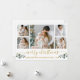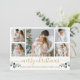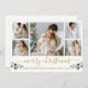 O roteiro de caligrafia moderna Merry Christmas 5 Photo Holiday Card inclui Watercolor Eucalyptus Leaves. Texto Dourado.