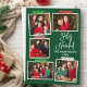 Moderno Diversão de Caligrafia Mande Feliz Navidad Feliz Felry Natal 5 Colagem de Fotos com Cartão de Férias de Fita de Artesanato. Fundo Verde Florestal.