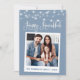 Script de caligrafia divertida moderna, Estilo de Câmera Instantâneo Foto Feliz Cartão Hanukkah - Azul Dusty com Luzes de Cordas