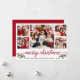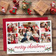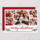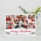 A Carta de Natal Merry Collage da Família Fotográfica do Script de Caligrafia Moderno 5 inclui Watercolor Christmas Holly Berries - Script Vermelho