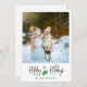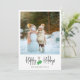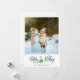 Cartão de Natal moderno com uma foto grande, roteiro de caligrafia, luvas verdes e mensagem personalizada.