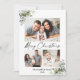 A Caneta de Tinta Mínima Moderna de Elegância Caligráfica Manuscrita Manuscrita Manuscrita Manuscrita de Feliz Natal 3 Cartão de Feriado Fotográfico inclui o Elegante Watercolor Greenery, Eucalyptus Leaves e Holly Berries.