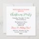 Festa de Natal festiva. Você é Convidado em script preto. A tipografia de saudação da temporada em branco contra retângulo geométrico verde e vermelho. A agulha de pinheiro verde-festivo é comprida com pínus cones e arco vermelho, sino de ouro e bagas vermelhas em madeira. A parte de trás tem detalhes de festas em tipografia negra e roteiro vermelho e verde. Design de fotografia original por TamiraZDesign.