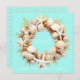 Bonito coroa de Natal com conchas de Starfish, pérolas bonito, corais e algas marinhas em fundo de turquesa. O reverso tem bolhas bonito no oceano sobre a turquesa. Para aquelas pessoas sortudas que não precisam lidar com toneladas de neve e podem ir à praia no inverno. Conteúdo genérico